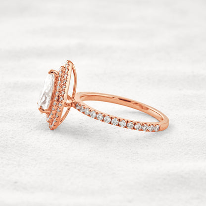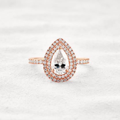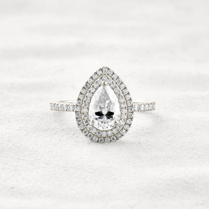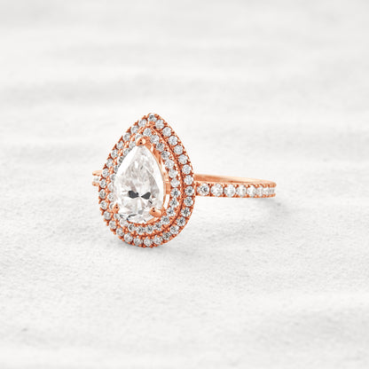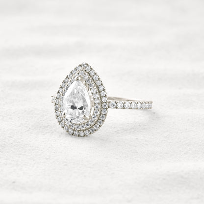 1.33 CT Pear Cut Double Halo Moissanite Diamond Engagement Ring