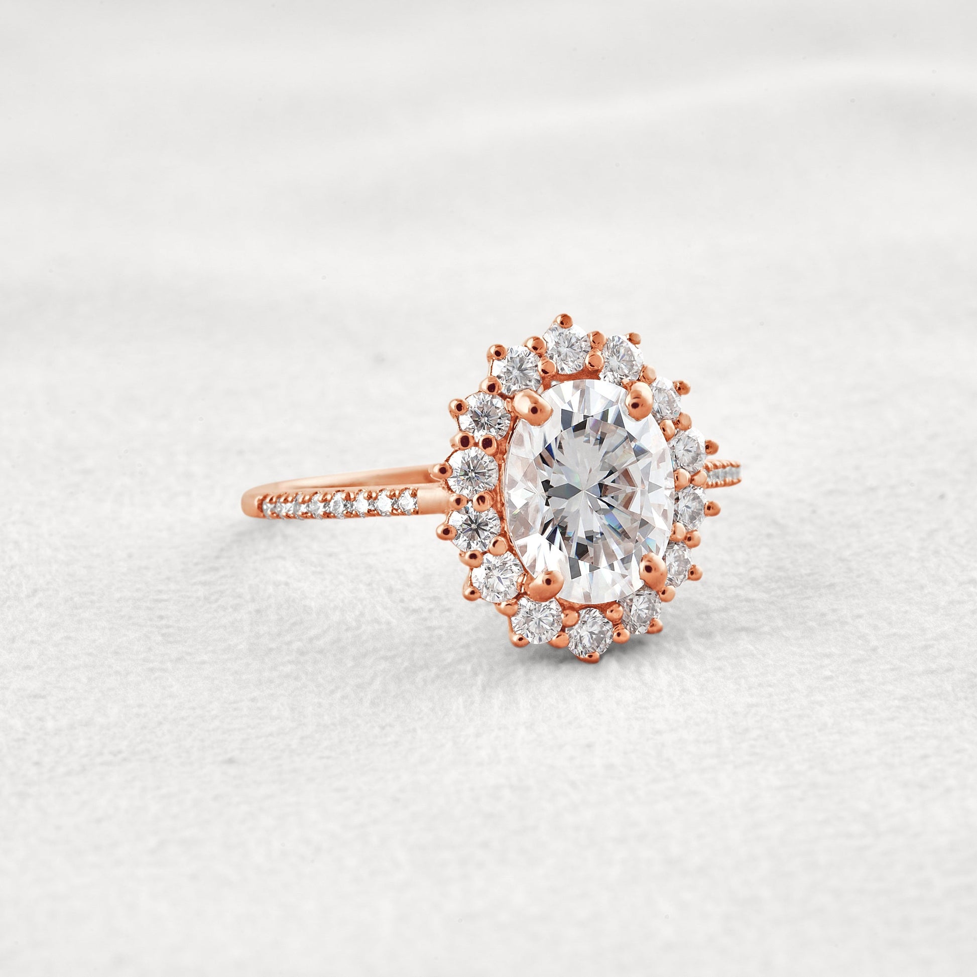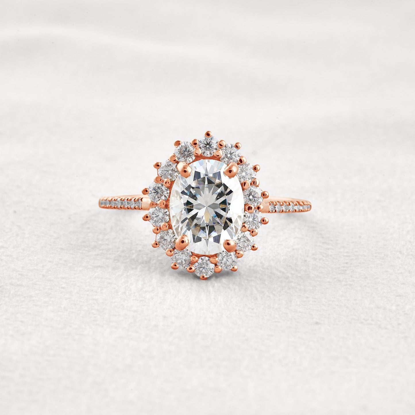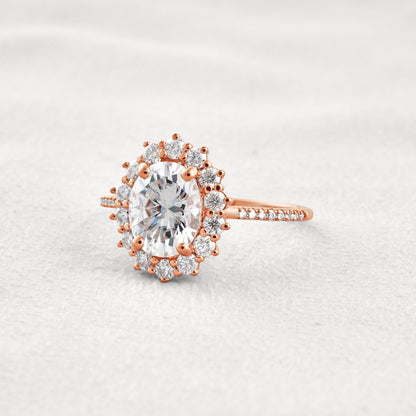 1.91 CT Oval Cut Halo & Pave Moissanite Diamond Engagement Ring In Rose Gold