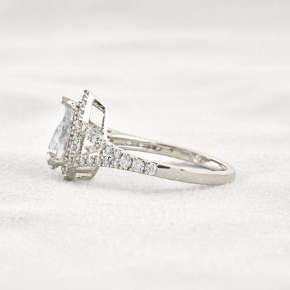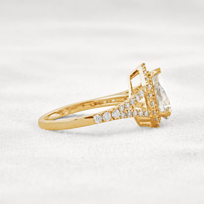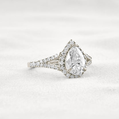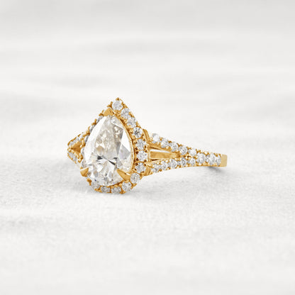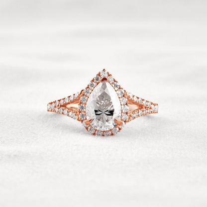3.1 CT Pear Cut Halo & Pave Moissanite Diamond Engagement Ring In Rose Gold