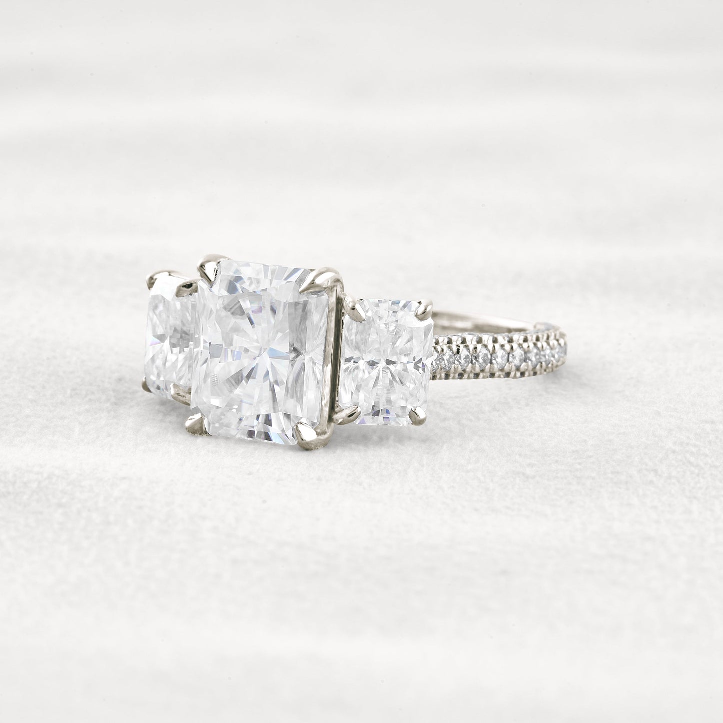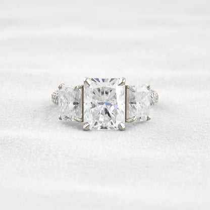 3.51 CT Radiant Cut 3 Stones Moissanite Diamond Engagement Ring In White Gold