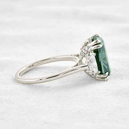 6.3 CT Dark Green Cushion 3 Stones Cut Moissanite Diamond Engagement Ring
